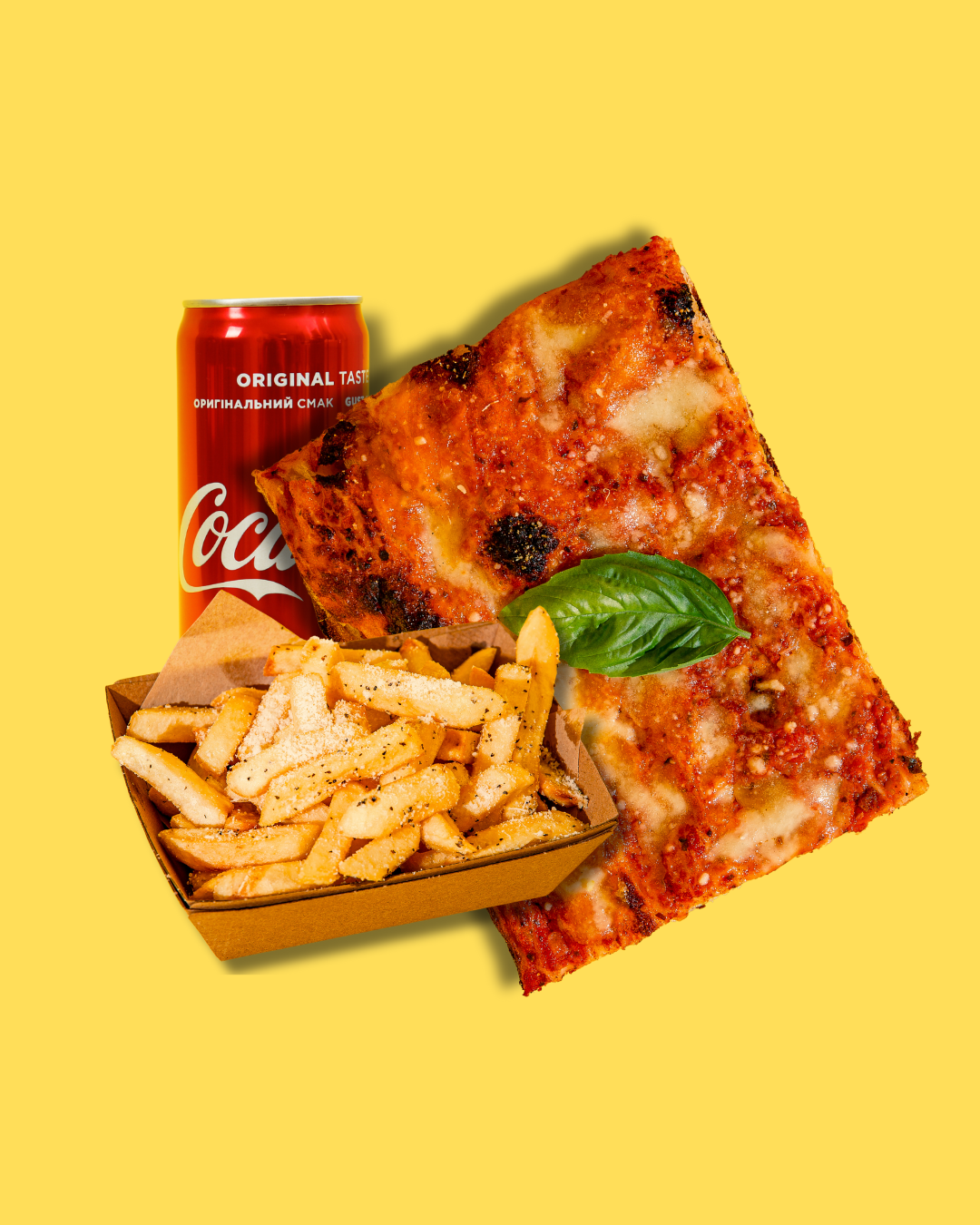 Margherita, sml truffle chips & drink. (Vegetarian) (Mozzarella, tomato sauce, basil)