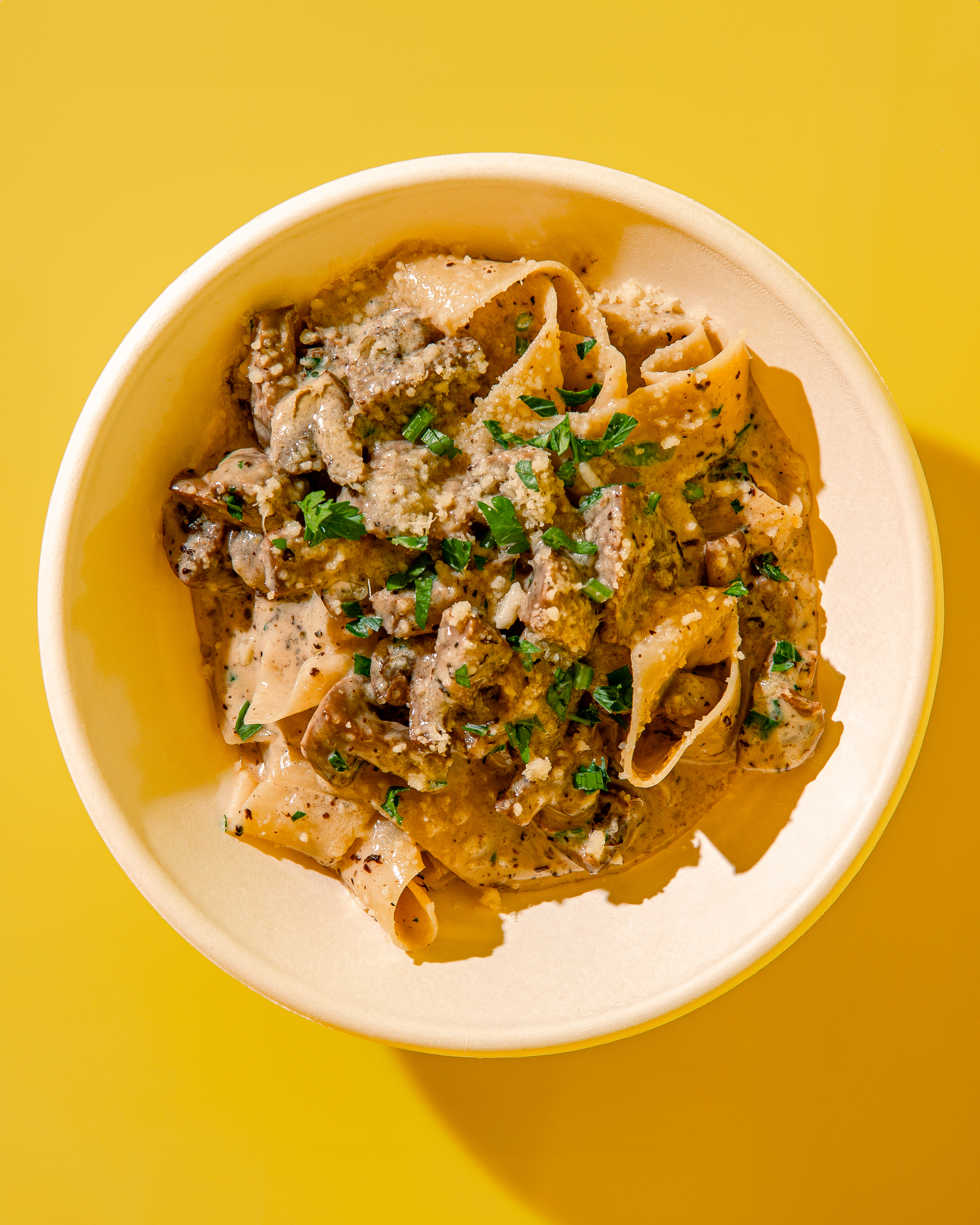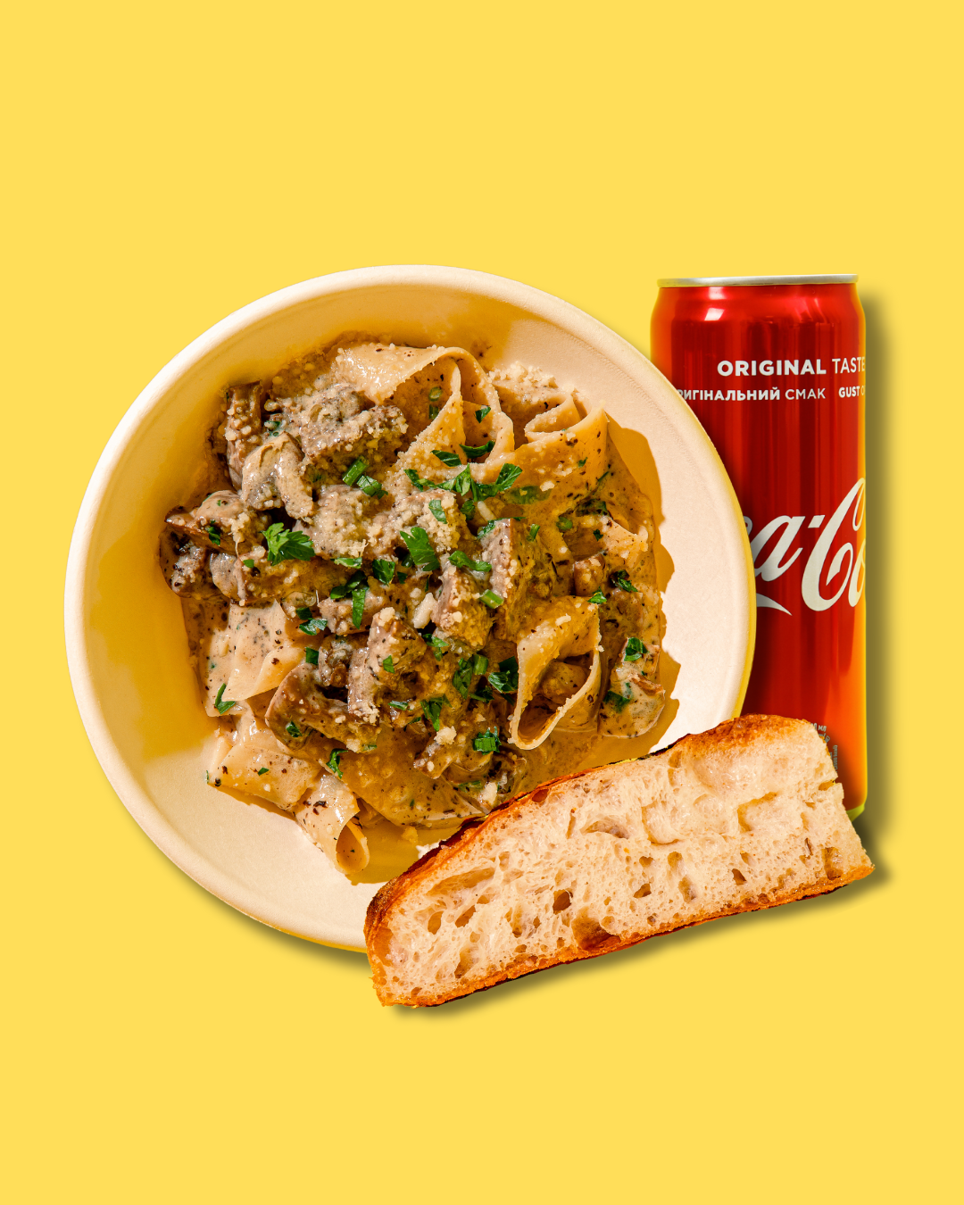 TRUFFLE FUNGHI, focaccia & drink (vegetarian) (Tagliatelle, mushrooms ragu and truffle cream)