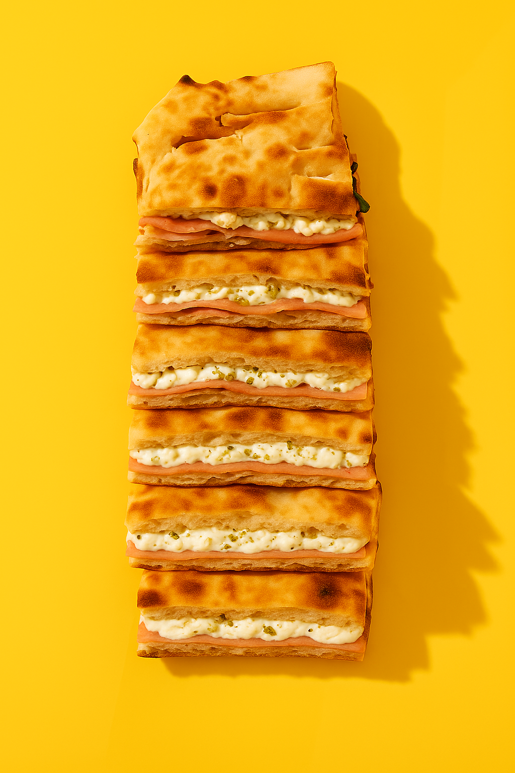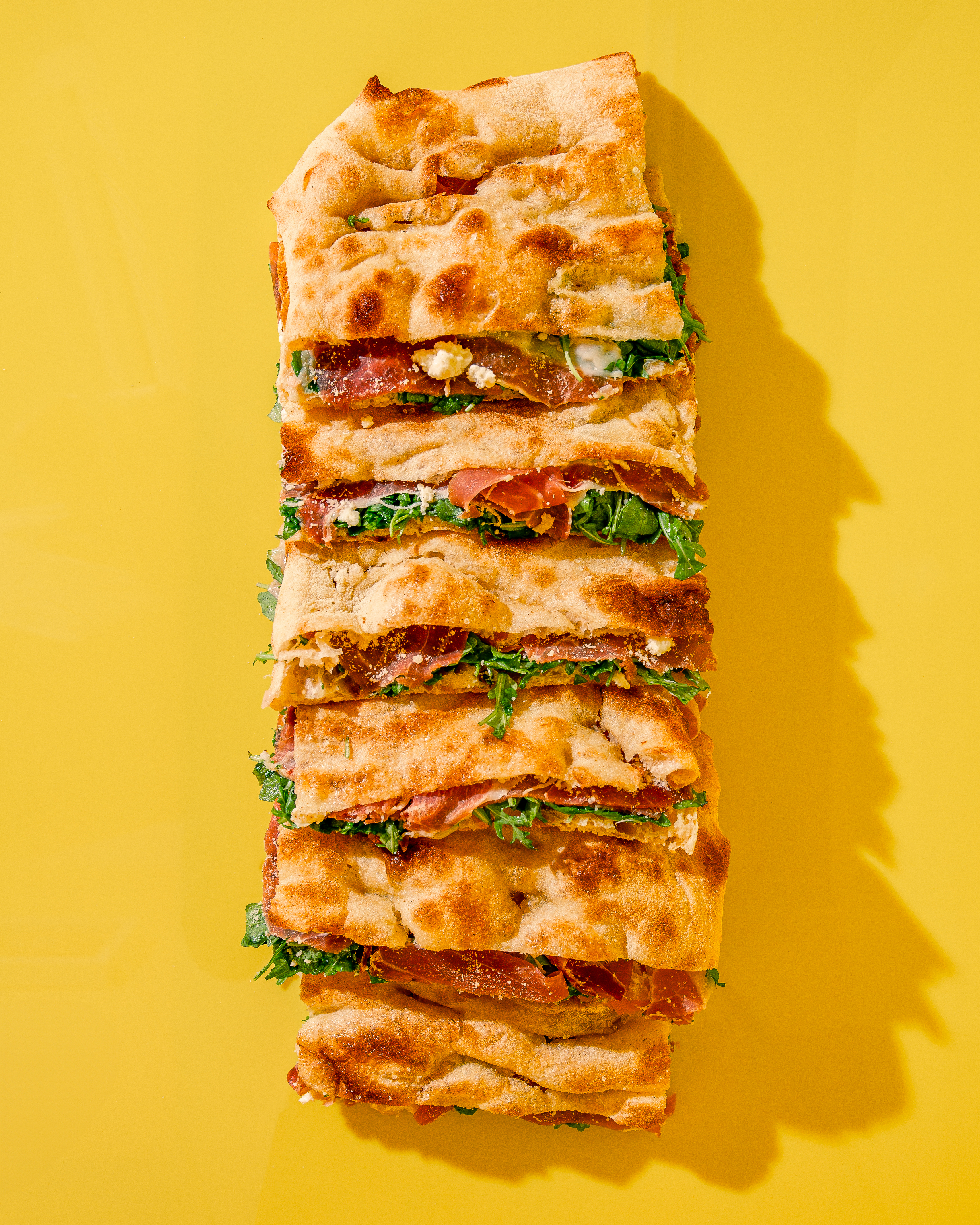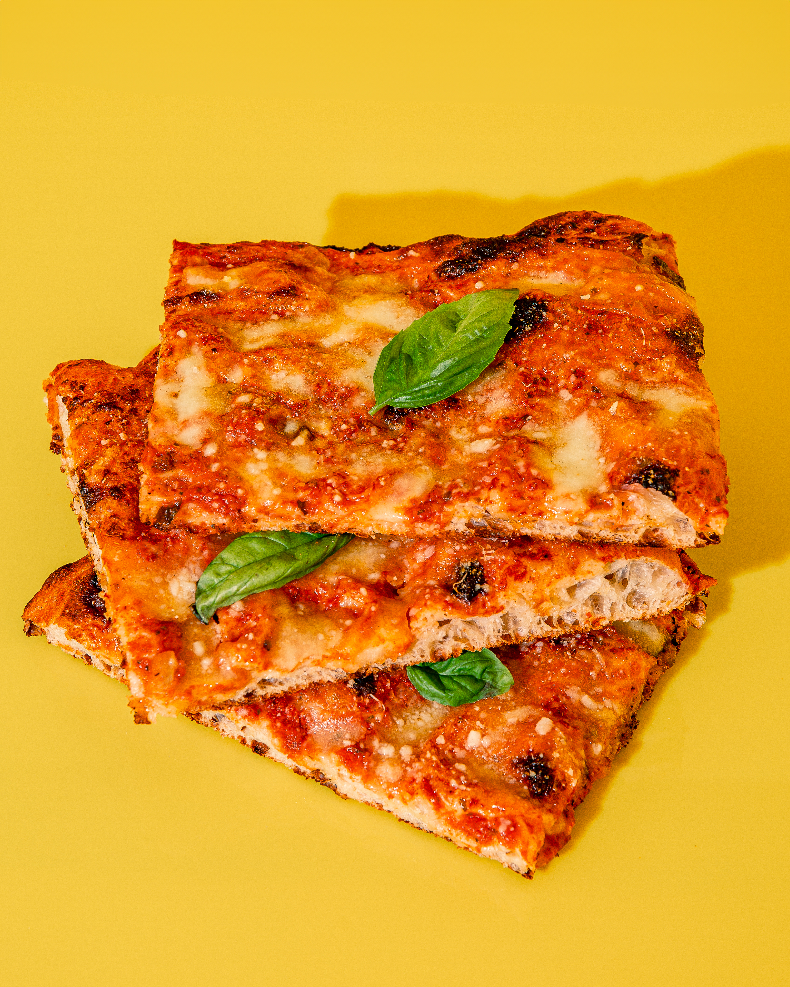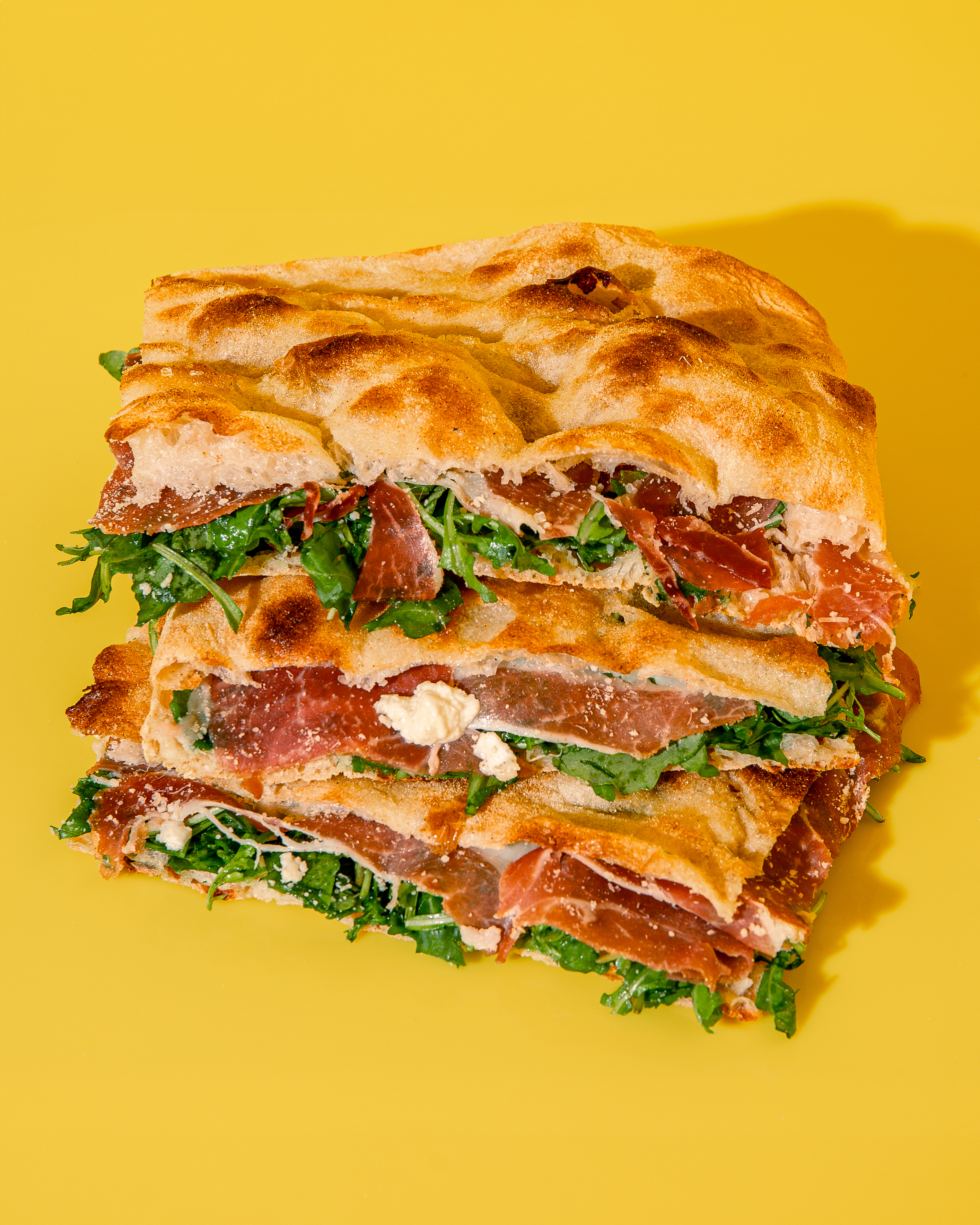 Norma, focaccia slice, Drink maccheroni, napoli, pesto, salted ricotta,V,