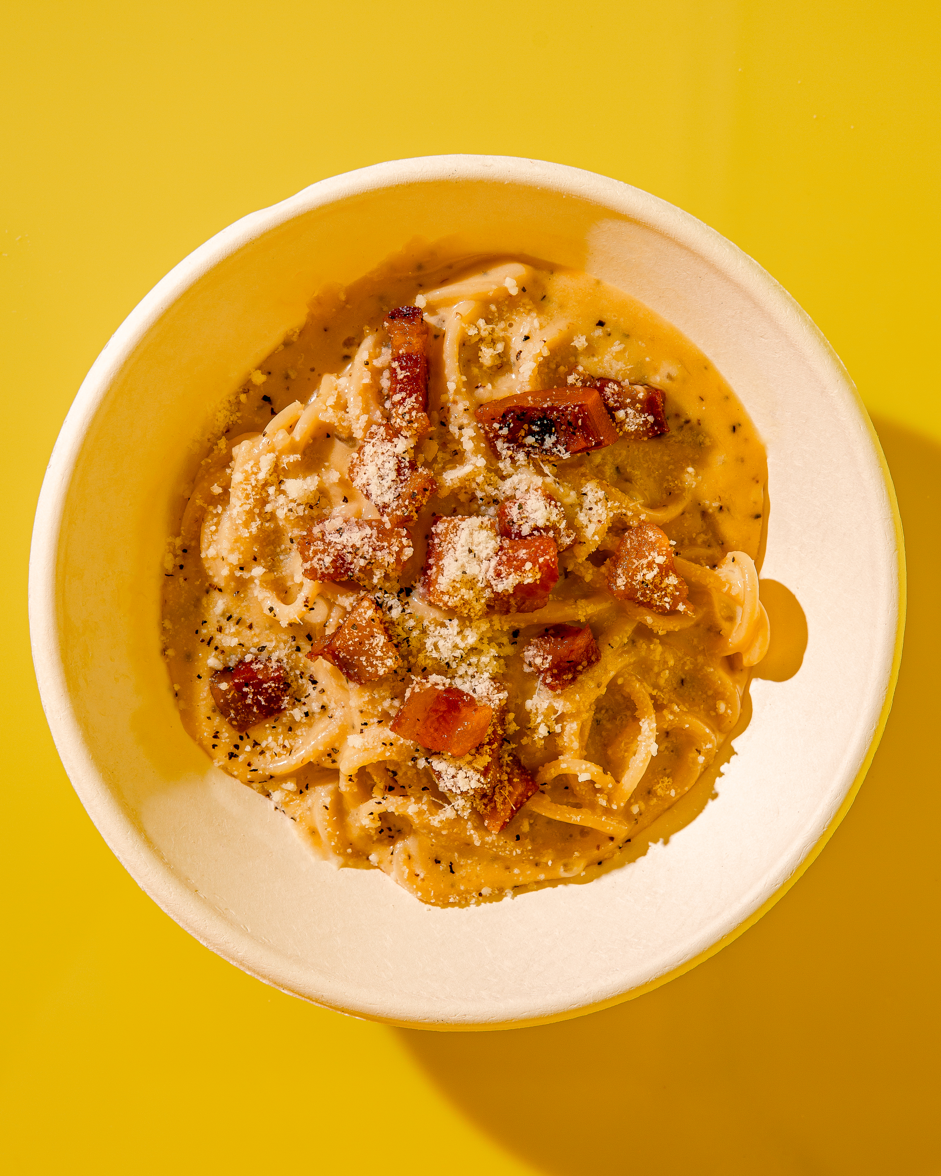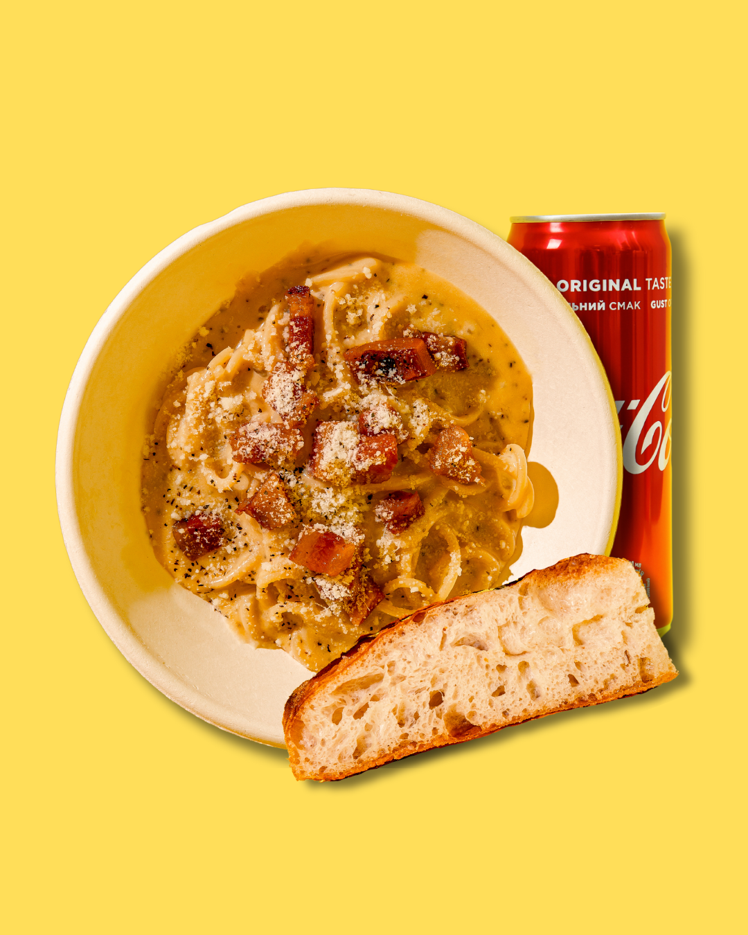 Carbonara , focaccia slice & drink (Tonnarello, carbonara sauce, guanciale)