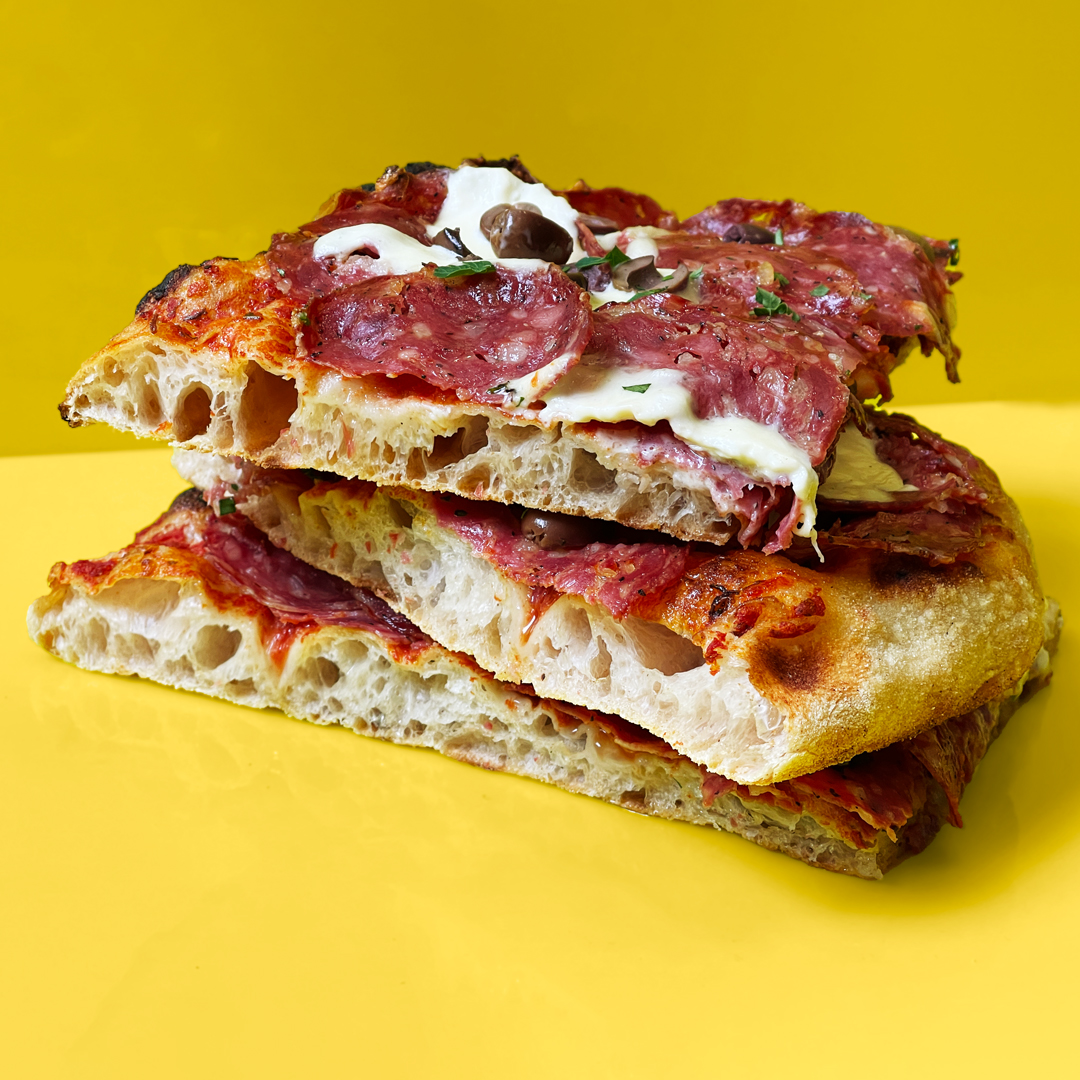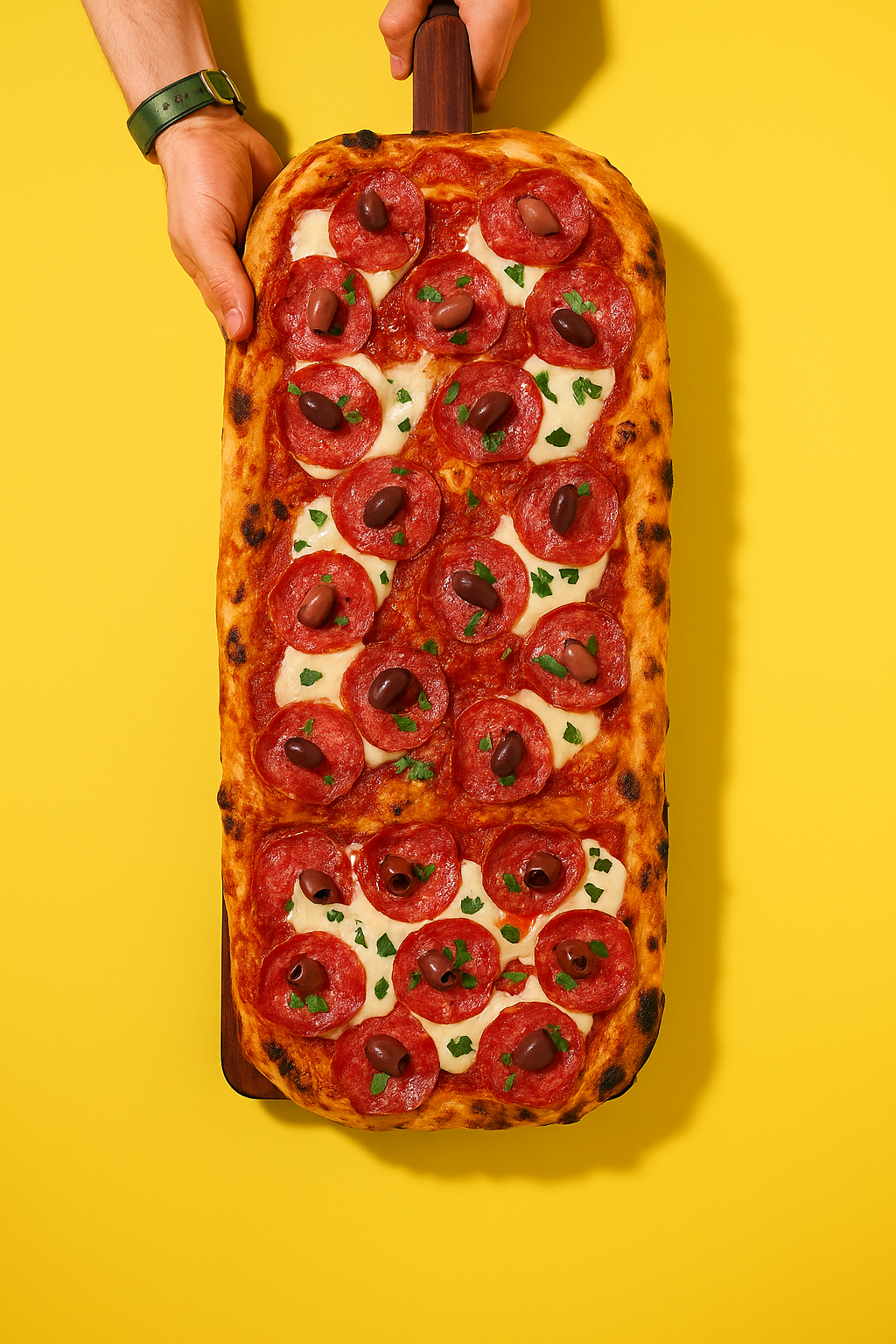 Full pizza (6 slices) salame, olives, mozzarella, parsley