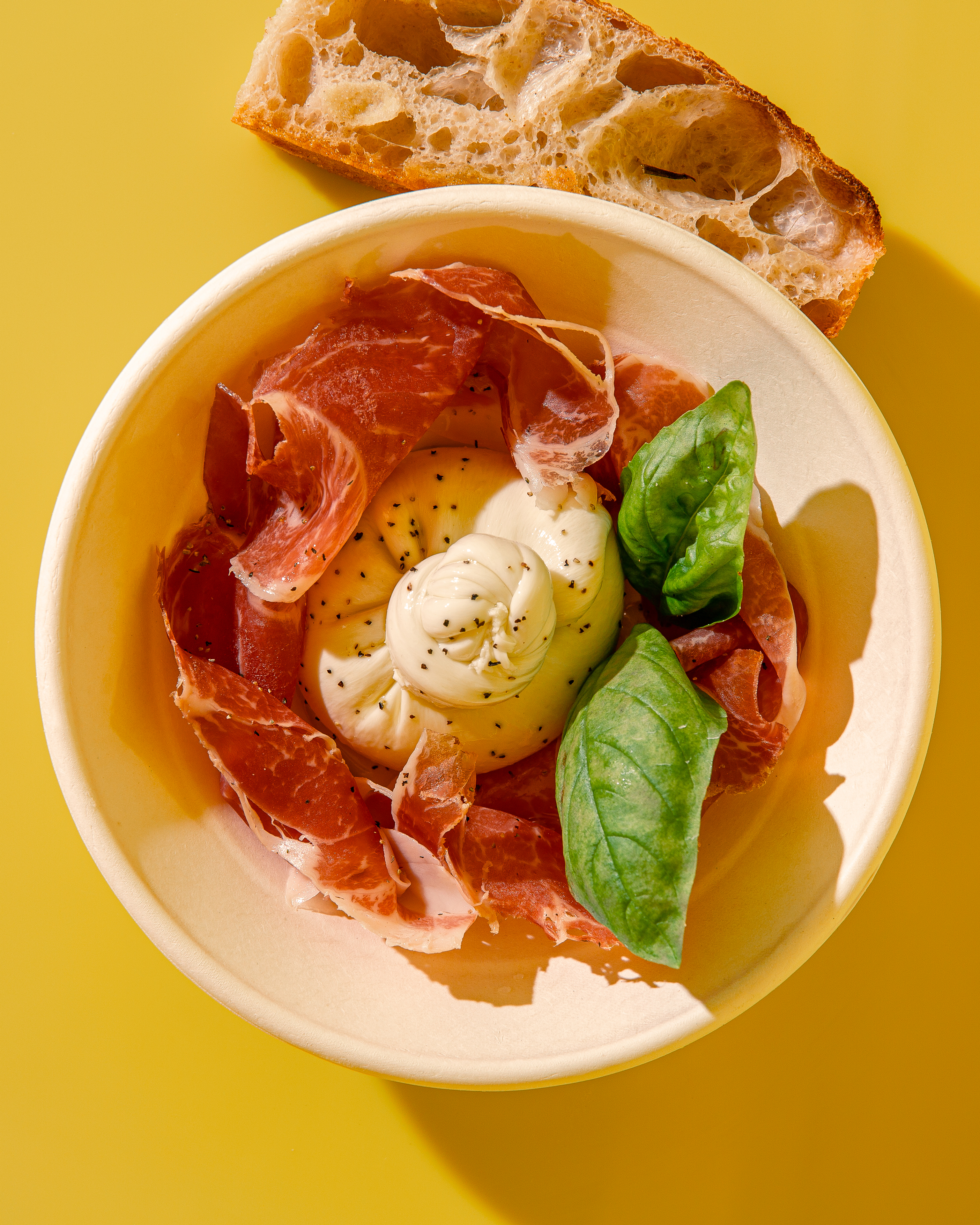 Mortadella, sml trulle chips & drink. (Mortadella, stracciatella & pistachio)