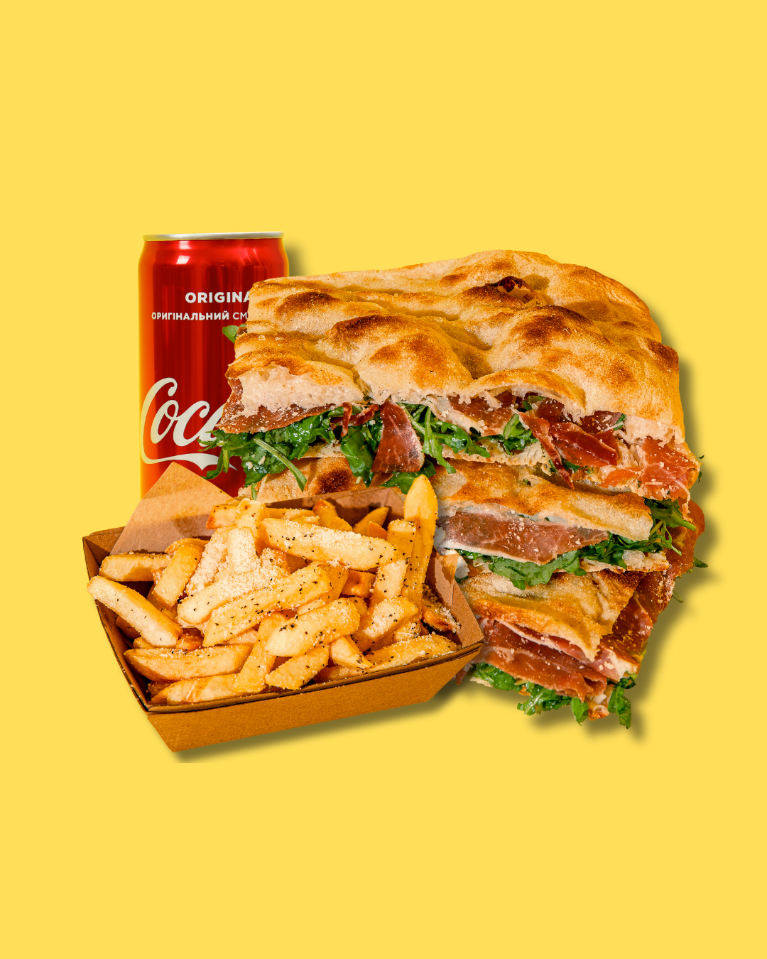 Prosciutto, sml truffle chips & drink. (Prosciutto, mozzarella, parmesan & rocket)