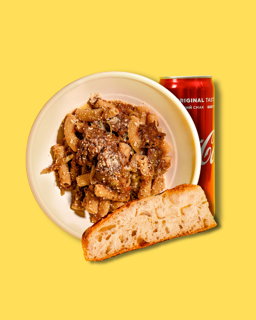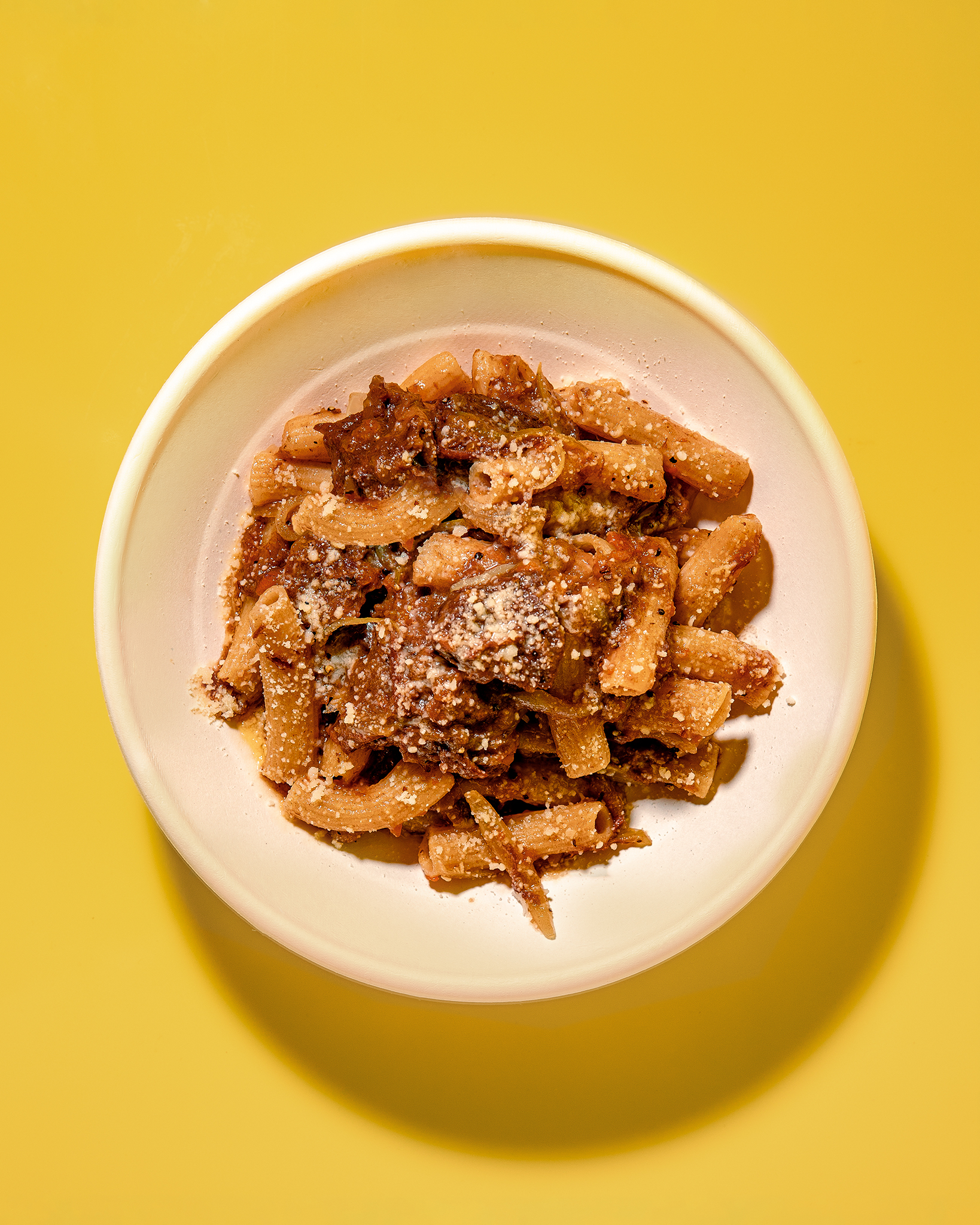 maccheroni, slow cooked beef, onion ragu’ WITH FOCACCIA AND DRINK