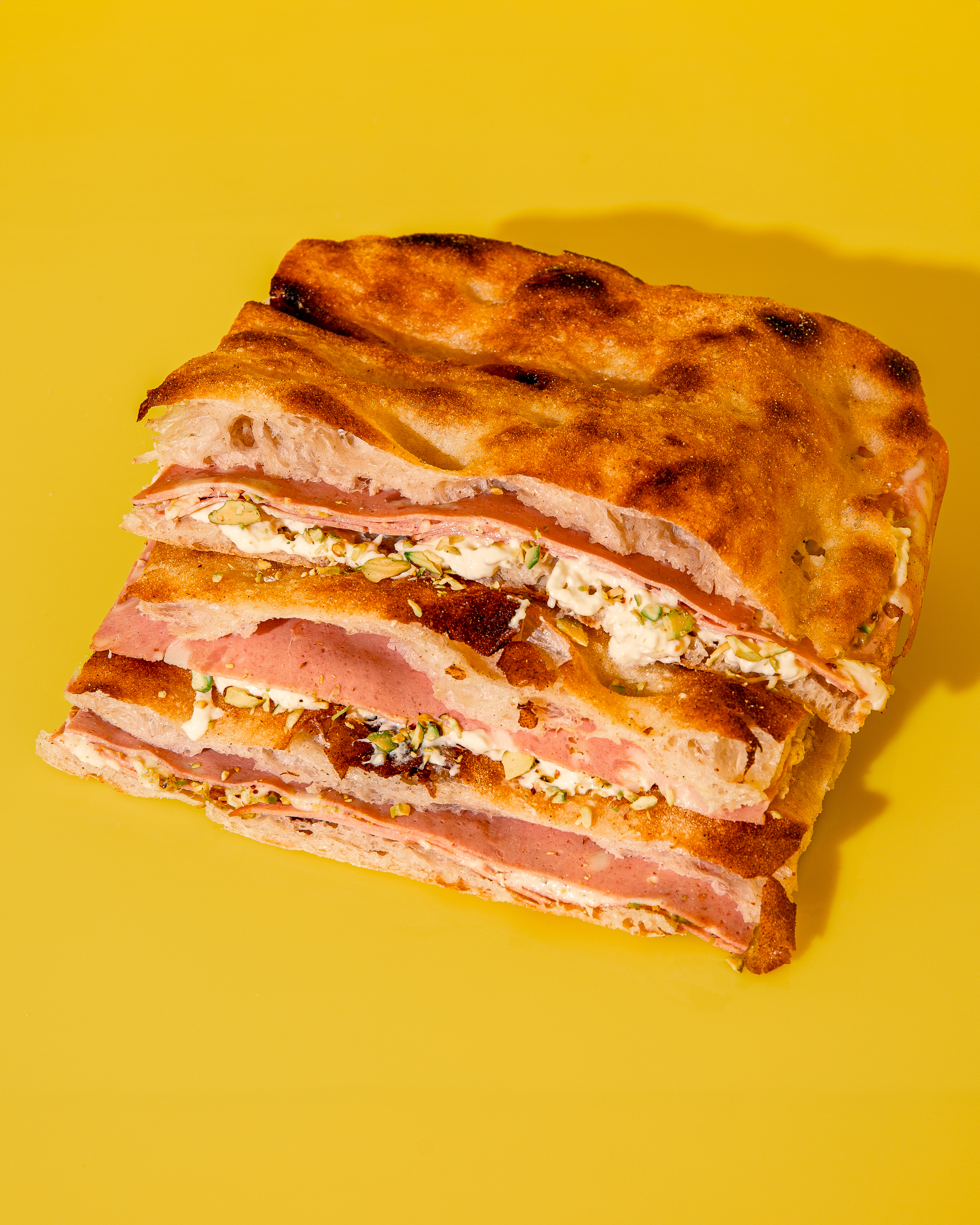 Full pizza (6 slices) mortadella, stracciatella, pistachios
